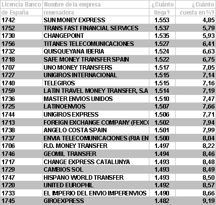 que el Banco de España ha otorgado 61 licencias en la categoría transferencia/cambio de moneda, en nuestro análisis