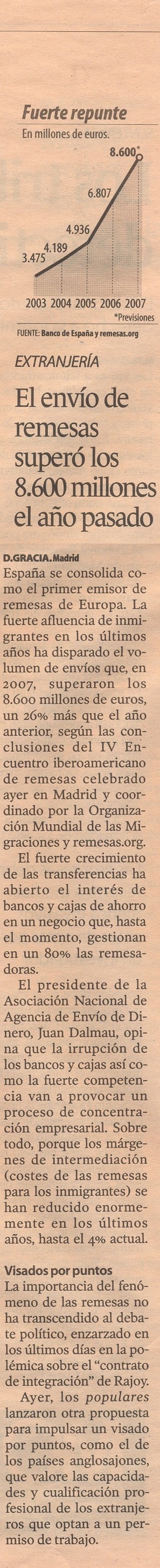 spanya és el vuitè país del món en l'enviament de remeses d'immigrants